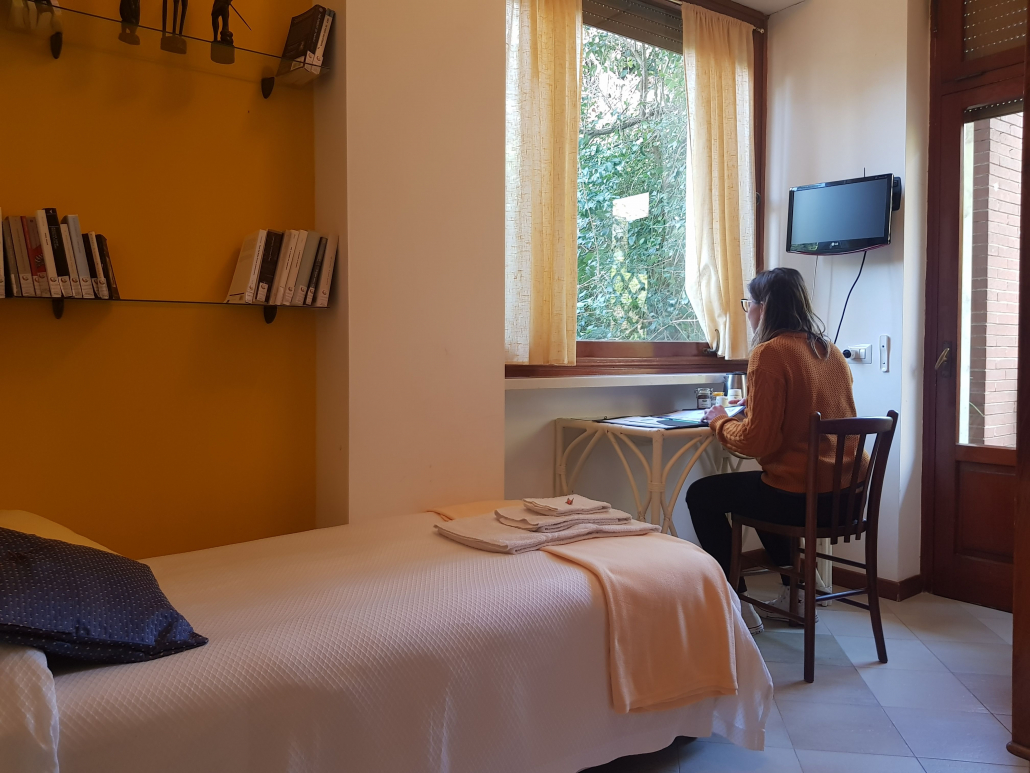 Tutte diverse, ma tutte legate dallo stile originale, le camere si trovano in un’elegante villa degli anni ’60. Mobili antichi si appoggiano in maniera armoniosa alle pareti decorate da artisti contemporanei.